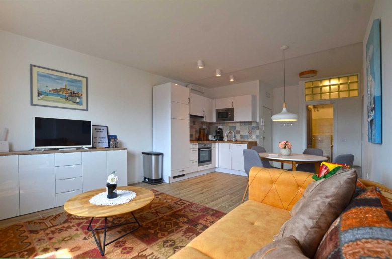 Apartman raspolaže s dvije prostrane spavaće sobe s udobnim posteljinama i modernim namještajem, osiguravajući miran i ugodan san nakon dana ispunjenog avanturama. Dnevni boravak savršeno je mjesto za opuštanje i druženje zahvaljujući prozračnom uređenju i udobnom namještaju. Kao dodatna informacija, apartman se nalazi u prizemlju i ima prekrasan balkon. Apartman također raspolaže privatnim parkirnim mjestom. Nažalost, boravak kućnih ljubimaca nije dopušten.